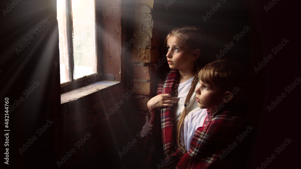 Children stand at the window
