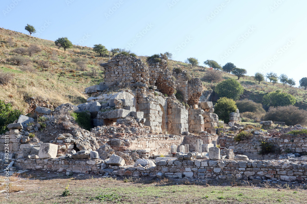 ruins of the ancient temple in archaeological site Ephesus in Turkey