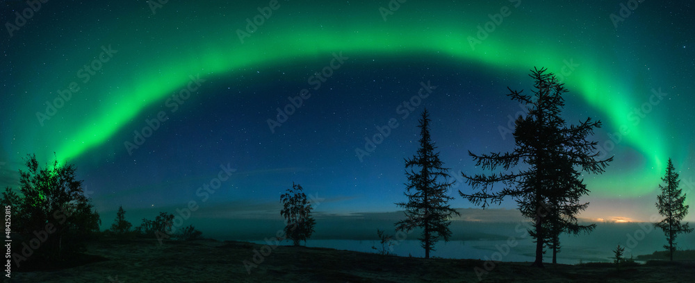 beautiful winter Northern lights with trees