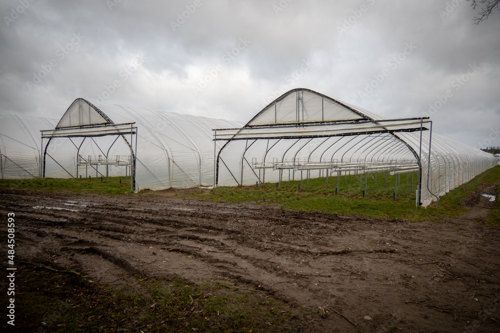 large foil greenhouses are empty in winter