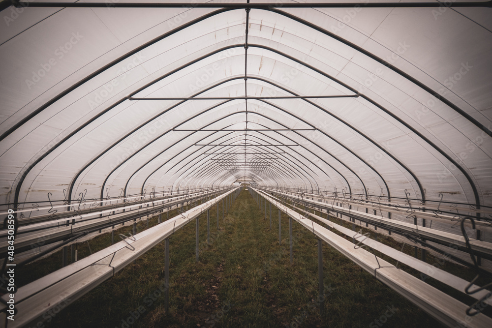 large foil greenhouses are empty in winter