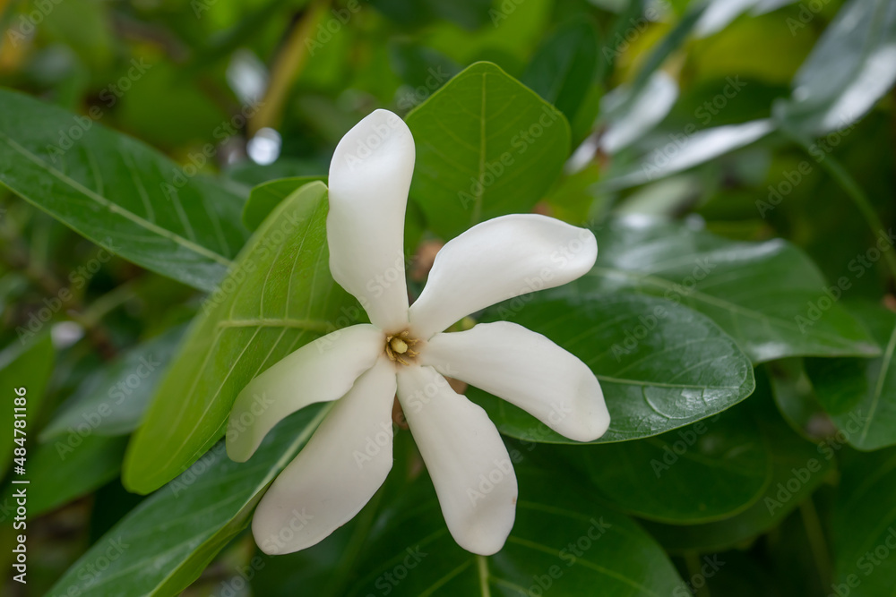 Gardenia taitensis, also called Tahitian gardenia or tiaré flower, is a species of plant in the family Rubiaceae. It is an evergreen tropical shrub that grows to 4 m (10 ft) tall and has glossy dark g