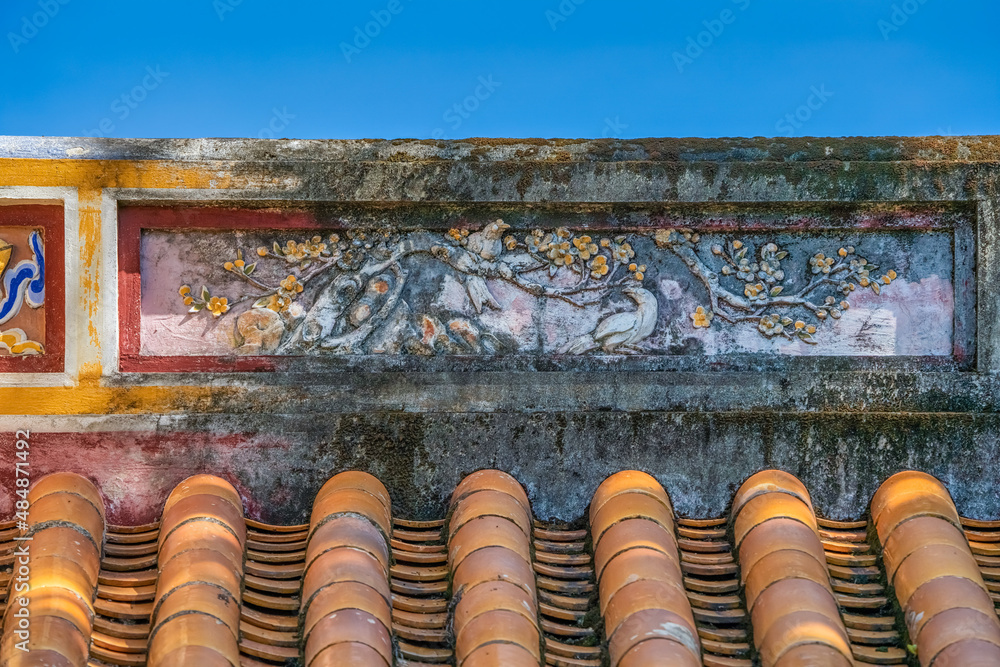 Decoration of the Hien Lam Cac house in the Imperial City with the Purple Forbidden City within the Citadel in Hue, Vietnam. Imperial Royal Palace of Nguyen dynasty