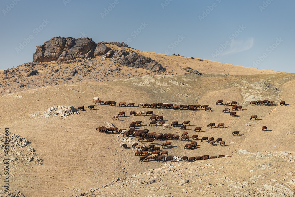 Sheep grazing on the top of the mountain