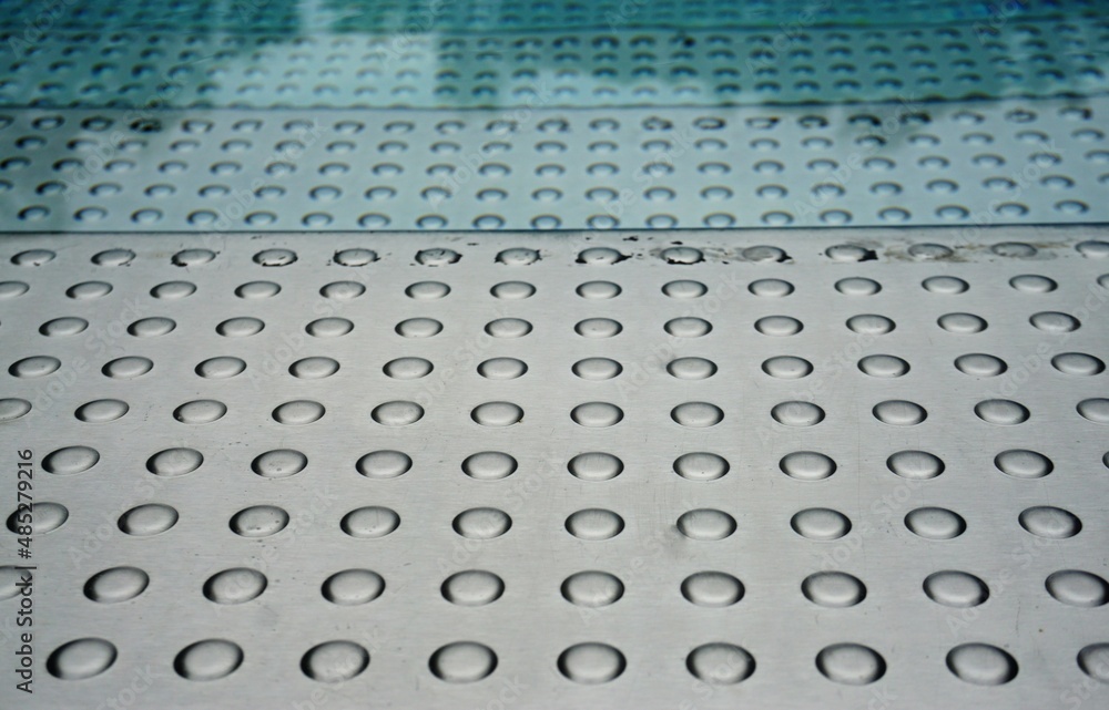 Treppenstufen aus Metall im Schwimmbecken mit Wasser und Spiegelung