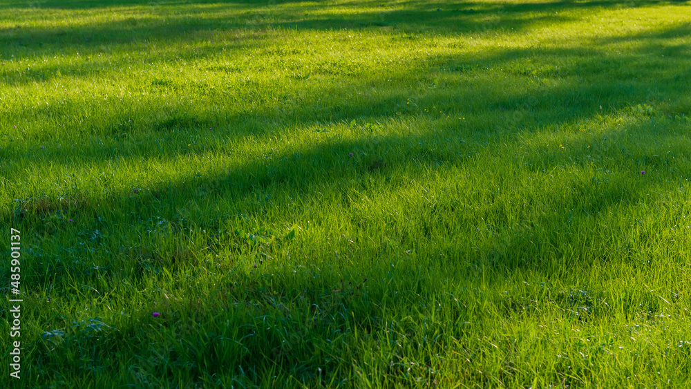 Shadows on the surface of meadow green grass.
