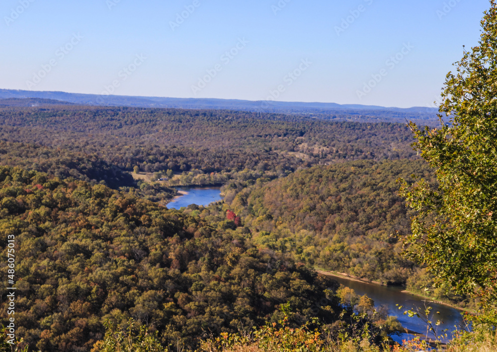 Looking out over the White River and surrounding area from high up on a mountain in Buffalo City, Arkansas