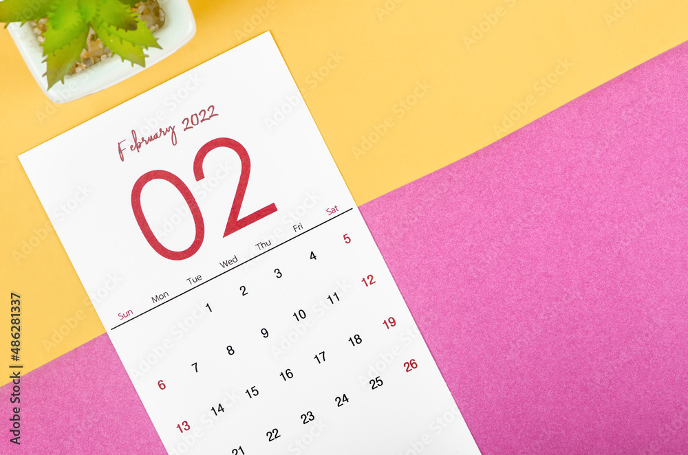 February 2022 calendar on multicolored background.