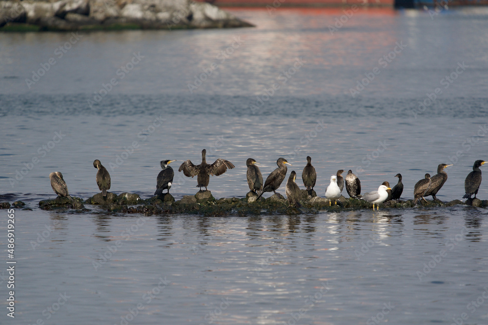 Pygmy Cormorant (Microcarbo pygmaeus) perched on rock