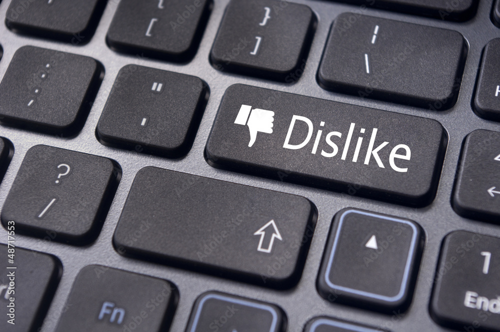 dislike message on keyboard button, antisocial media concepts