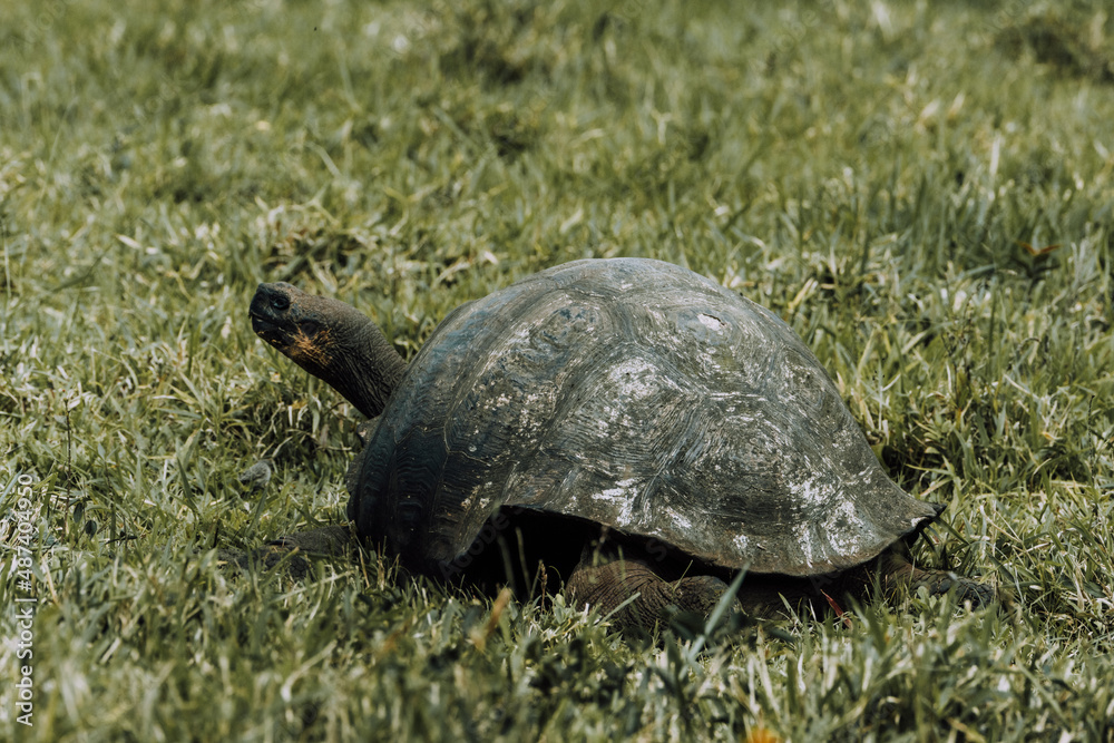 Giant Galapagos Tortoise in the grass - Santa Cruz, Galapagos, Ecuador