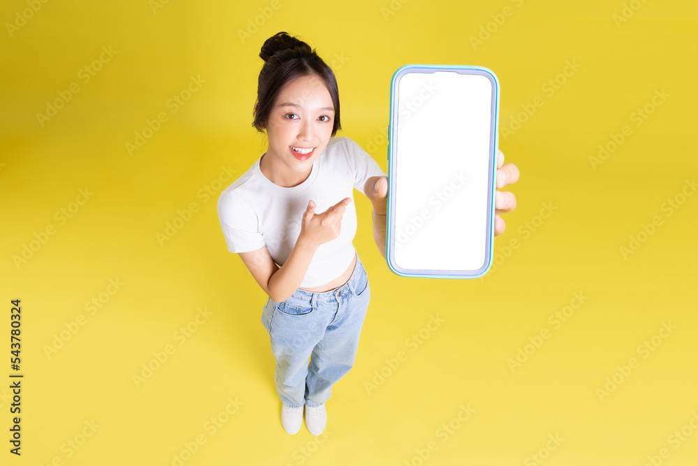 Little beautiful smiling girl in Easter bunny ears headband holds in hand a basket with Easter eggs, sitting on the floor and covering eye with egg on pink background. Copy space