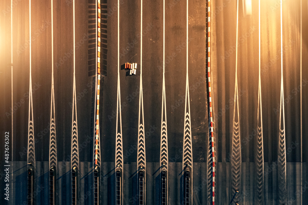 Aerial view of the toll road. toll collection point for motorway tolls, evening time