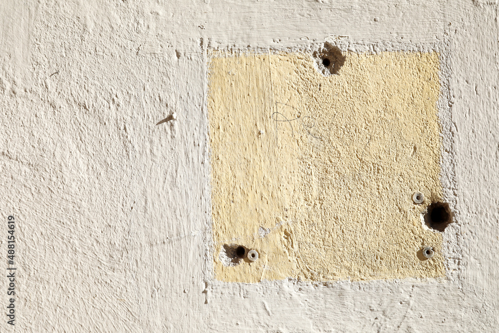 pared blanca con mancha amarilla de obra casa de pueblo encalada con textura rugosa gotelé exterior 4M0A2240-as22