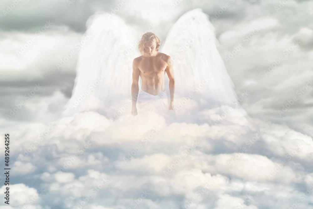 The majesty of an arch-Angel. Shot of a masculine angel walking through the heavens.