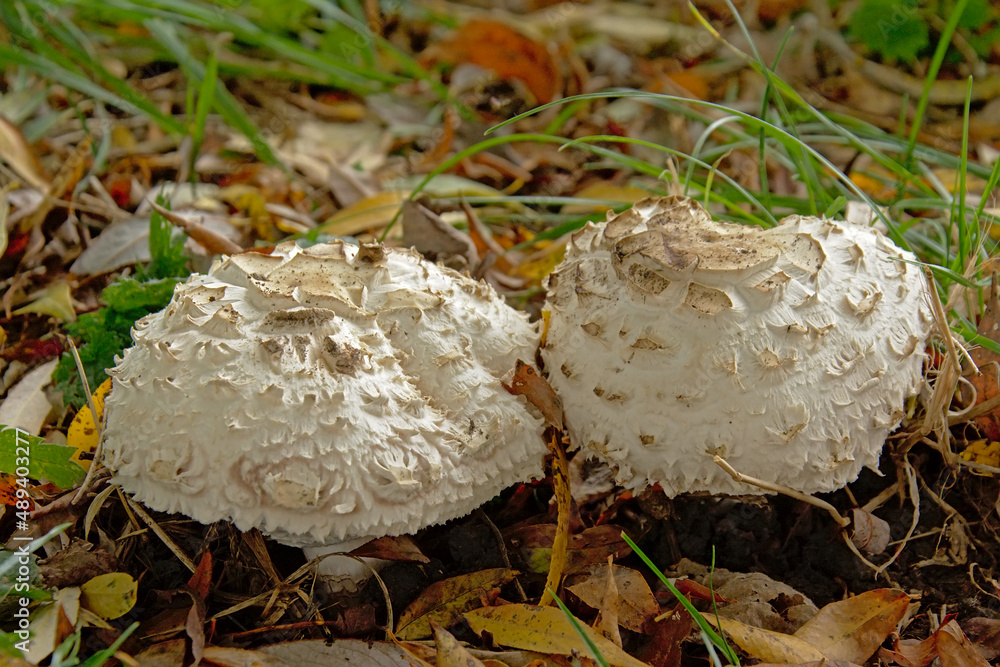 White shaggy parasol mushrooms - Chlorophyllum rhacodes