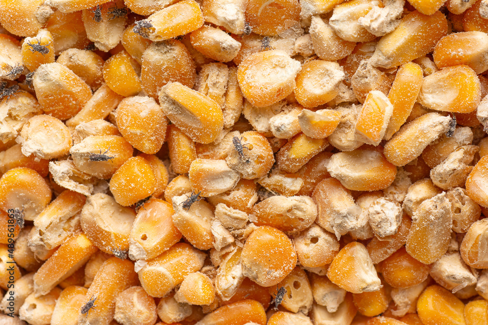 Corn weevil, Maize weevil beetles ,Maize grain weevil, Insect damaged corn kernels