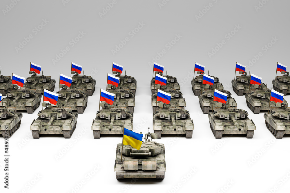 Russia and Ukraine Flags. War conflict concept. 3D Illustration
