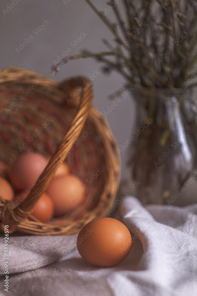 Easter. Photo Still life with eggs in a rustic style. soft focus and tinting