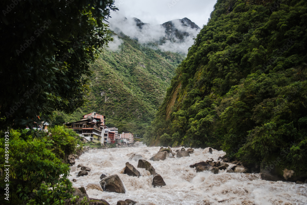 The Urubamba River running through the town of Aguas Calientes in Peru.