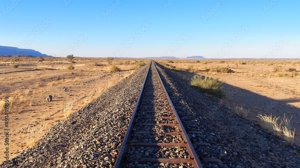 Low-angle view of rails in the Namib Desert, Namibia