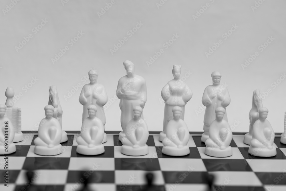 Ukrainian chess with Gogol's heroes on the board symbolizes battle and war