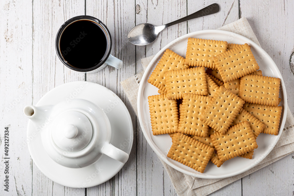 Plate with cornstarch biscuit on the table.