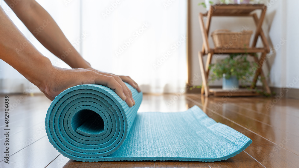 ヨガマットを広げる・丸める 準備・片付けイメージ
