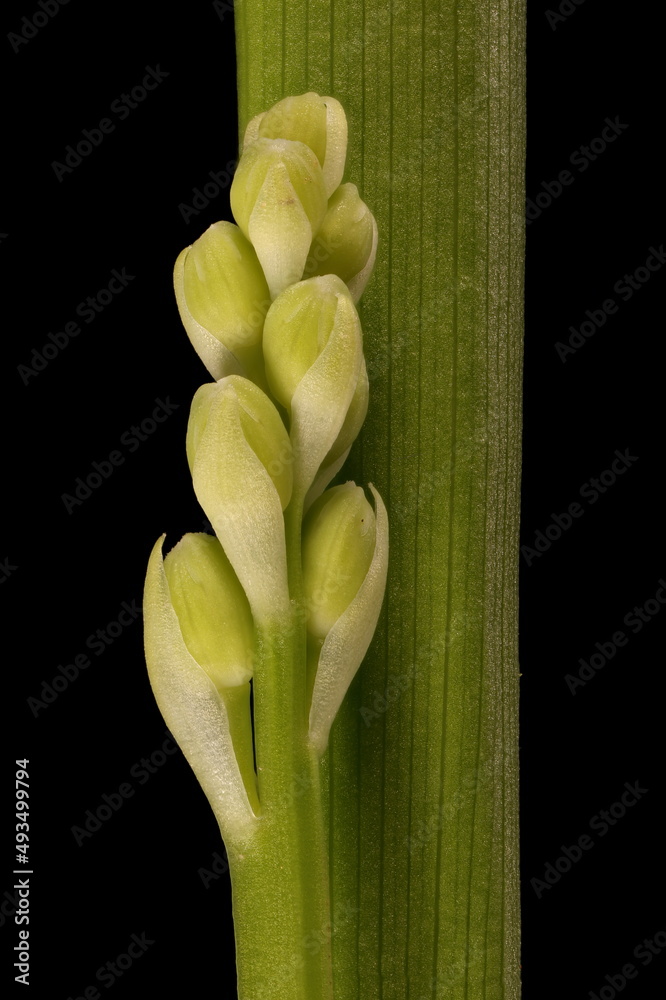 Lily-of-the-Valley (Convallaria majalis). Immature Inflorescene Closeup