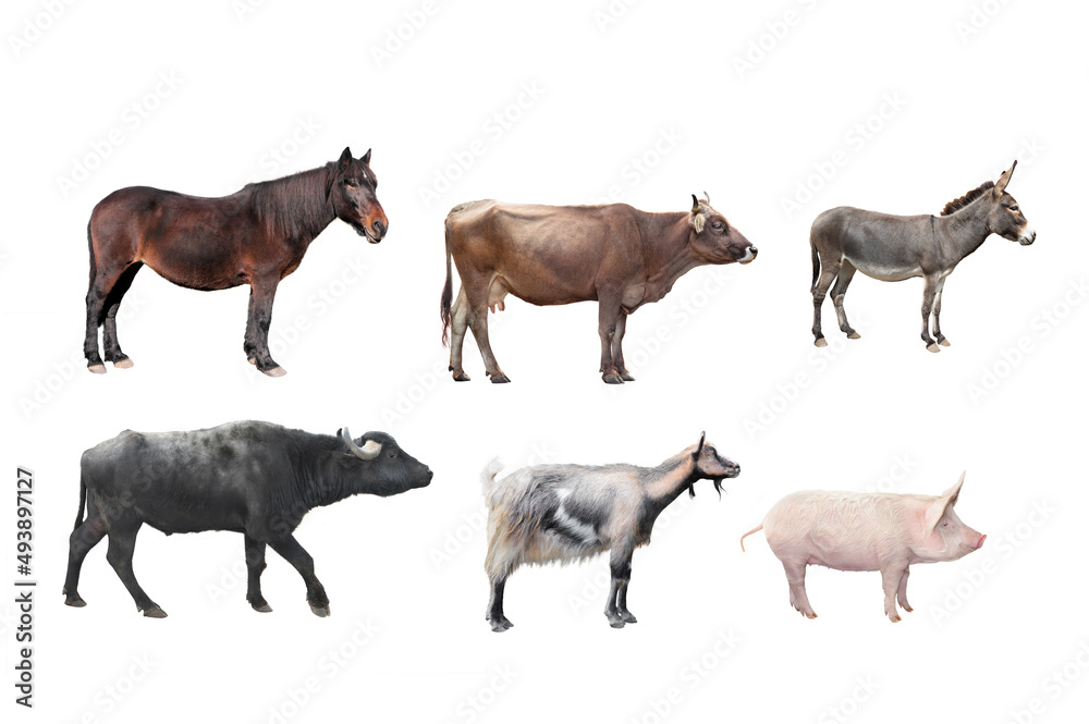 horned rural cattle isolated on white background