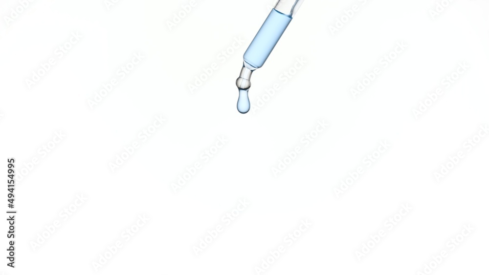 Macro shot of a lab dropper with green liquid on white background | Abstract body care cosmetics with plant oils formulating concept