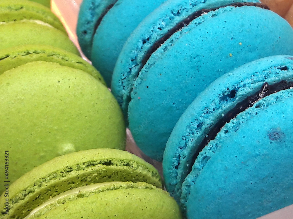 Colorful french macarons of different flavours