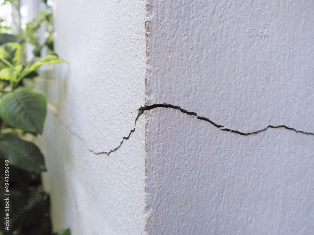 Cracked concrete building wall at the outside corner that effected with earthquake and collapsed ground