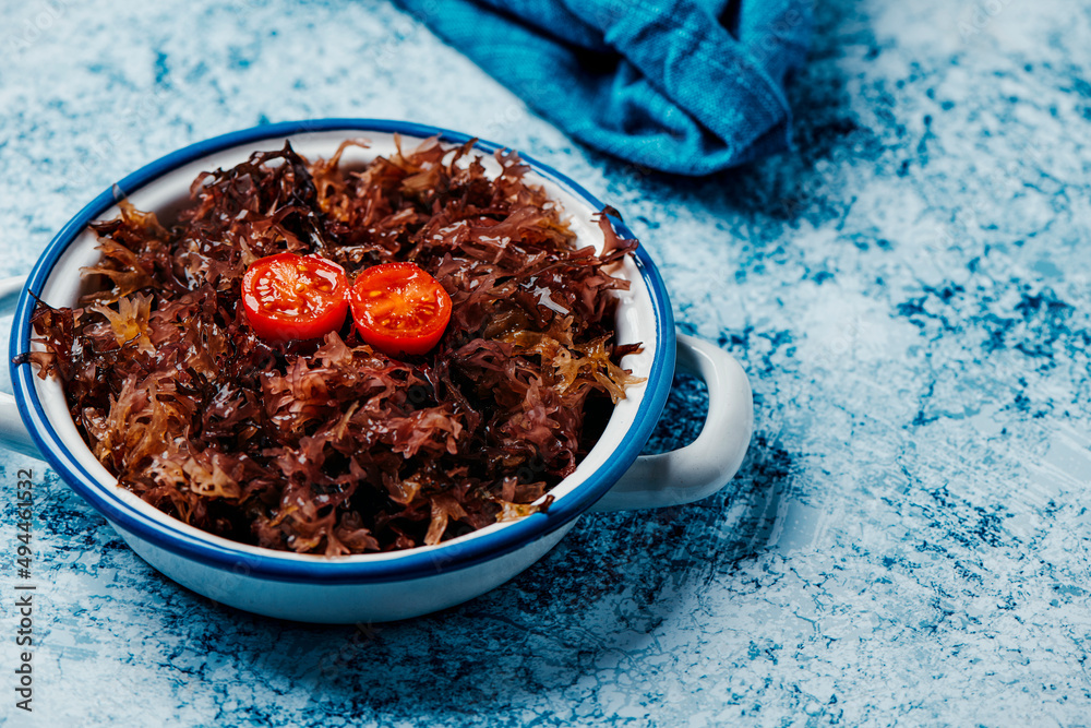 some cooked irish moss in a white enamel saucepan