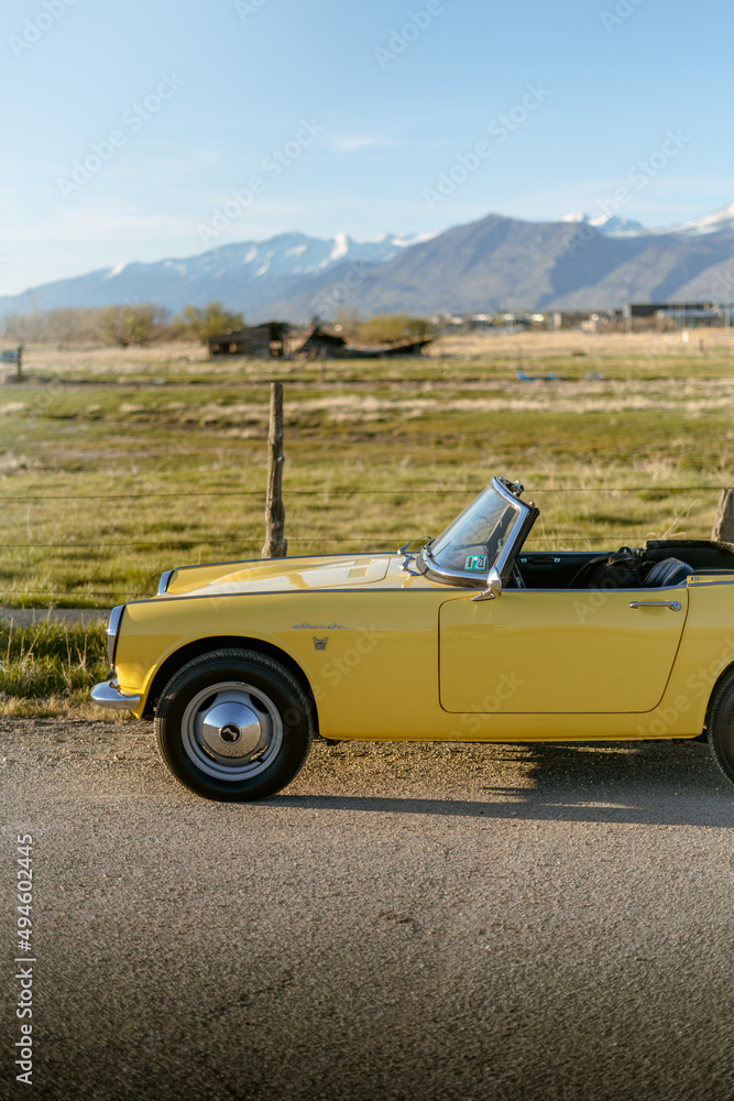 Yellow Japanese Classic Convertible Sports Car