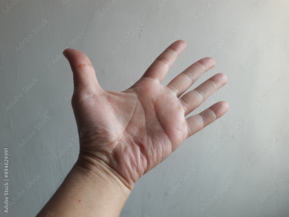Shot of various hand poses in natural light, hands in various motions isolated on white background