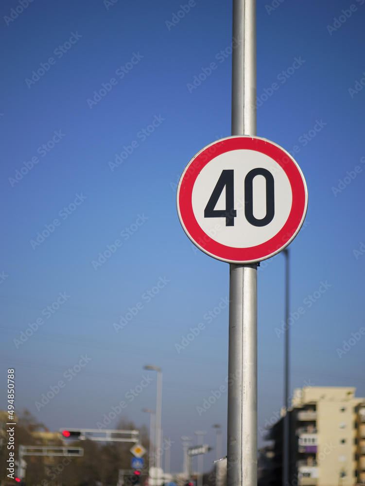 Vertical picture of a Speed Limit Sign 40 with the sky in the background