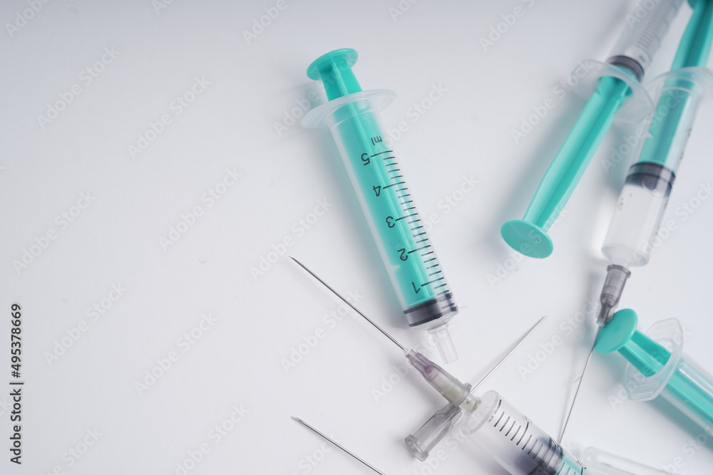 medical disposable injection syringe on a white background