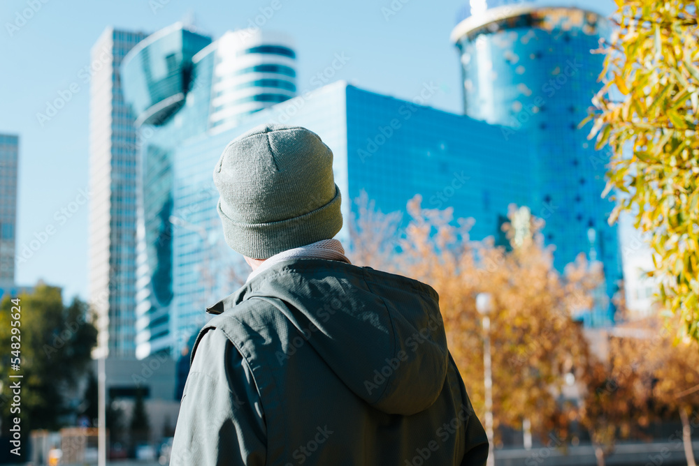 Wealth concept. Wooden block bar chart graph with text and upward trend line drawn on background. Copy space