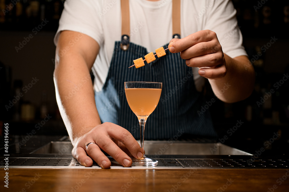 Glass of orange cold cocktail on the bar counter