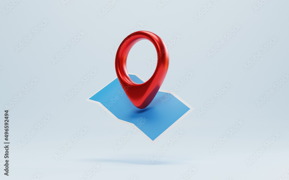 Red Locator and blue location pin on navigator with map for search concept by 3d render.