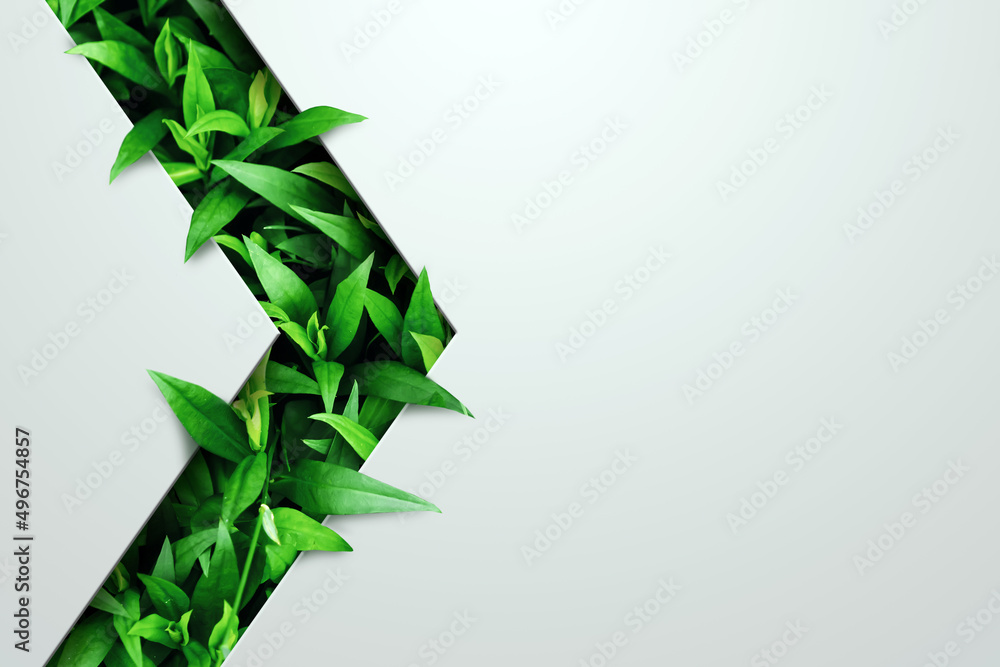 Natural concept, environment and organic products. Green abstract arrow, natural design. Natural design, flyer layout, marketing material, copy space.