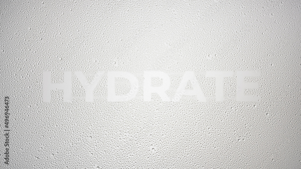 Writing hydrate printed on the wet glass on grey background | hydrating concept