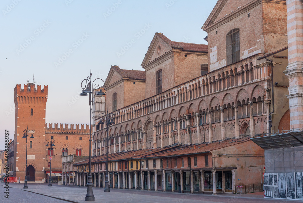 Sunrise view of Piazza Trento e Triste in Italian town Ferrara