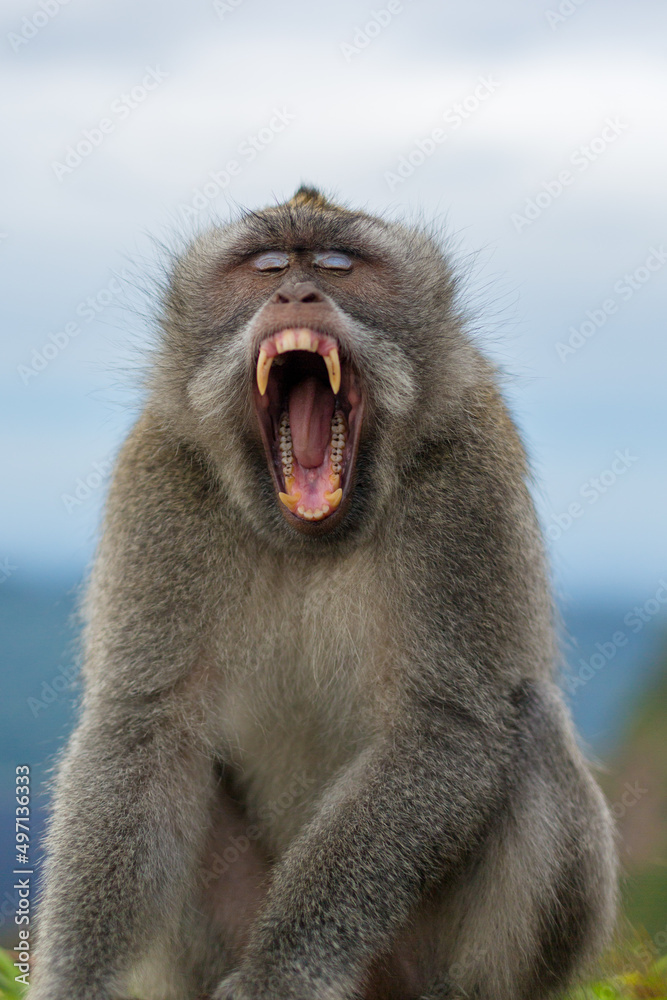 müder männlicher Makaken Affe gähnt