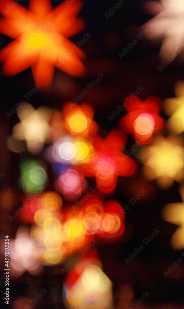 blurred Stars at the Christmas market in the German city of Erfurt as an abstract representation of the warmth of the Christmas season