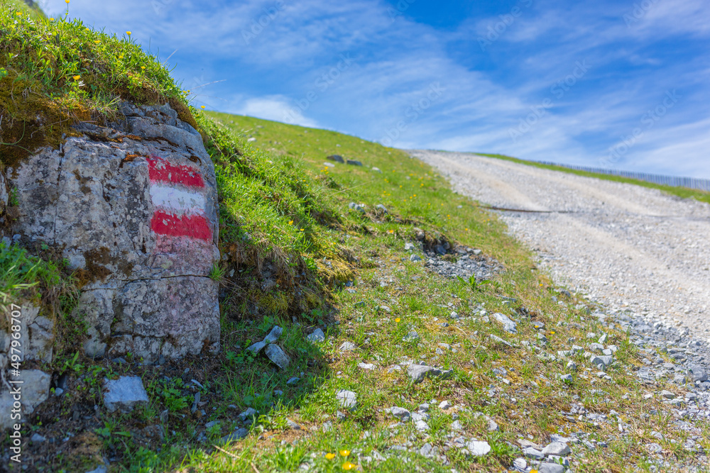 Kennzeichnung eines Wanderweges in Österreich in den Landesfarben