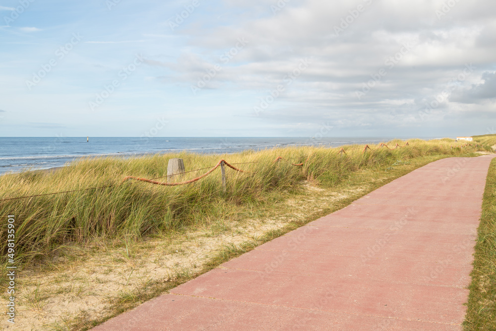 Footpath through the dunes along the coast on the Dutch island of Texel.