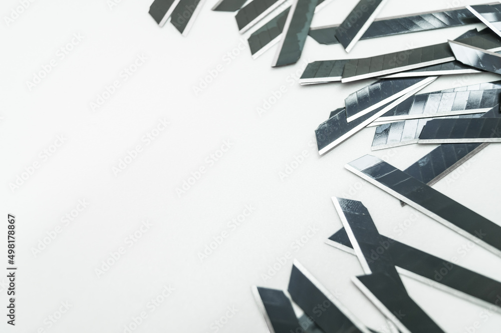 New black blades for stationery knife. A pack of spare stationery blades. Selective focus, copy space