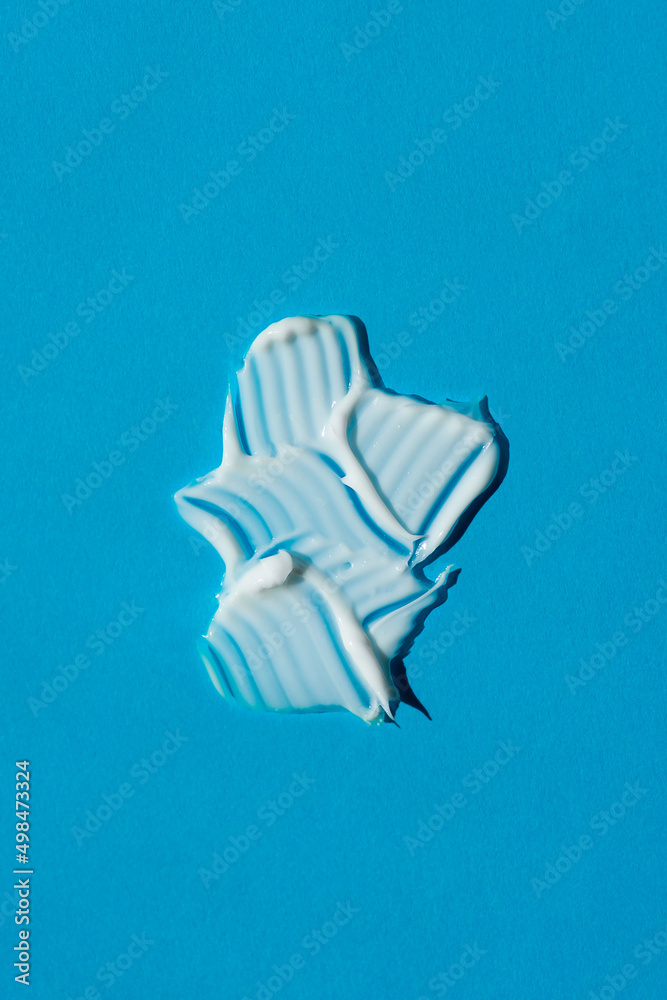 A swatch of cream or face mask. The appearance of the texture of the cream on blue background. Skincare products , natural cosmetic. Beauty concept for face and body care